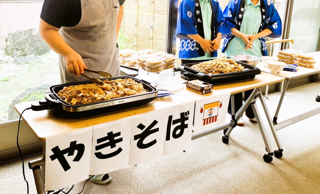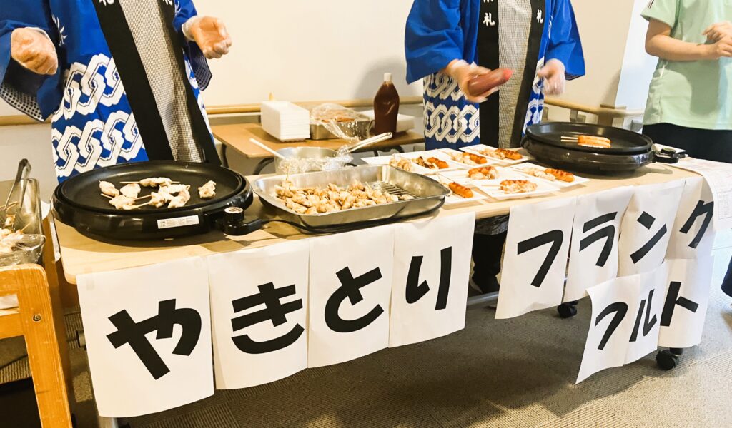 今年はお祭りで人気のじゃがバターと焼き鳥・フランクフルトと焼きそばが登場しました✨調理員によるライブキッチンで出来立てが提供されました。お祭りらしい雰囲気や香りをお楽しみいただけました😊