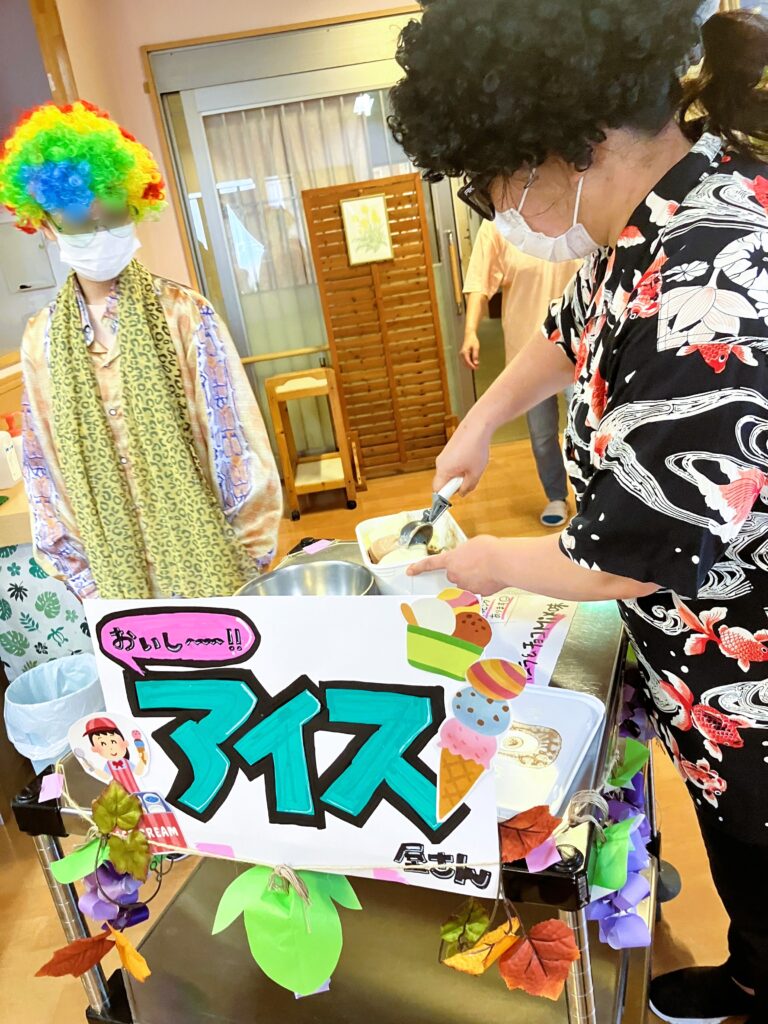お祭りの後は、各ユニットに華やかで明るい人たちが現れ・・・美味しいアイスクリームが振る舞われました🍦記念撮影をしたりと、大変喜んでいただきました😊